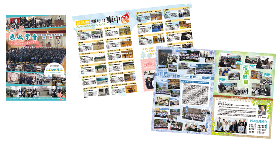 弊社デザイン制作の大垣市東中学校PTA広報誌「東風学舎(こちまなびや)」が